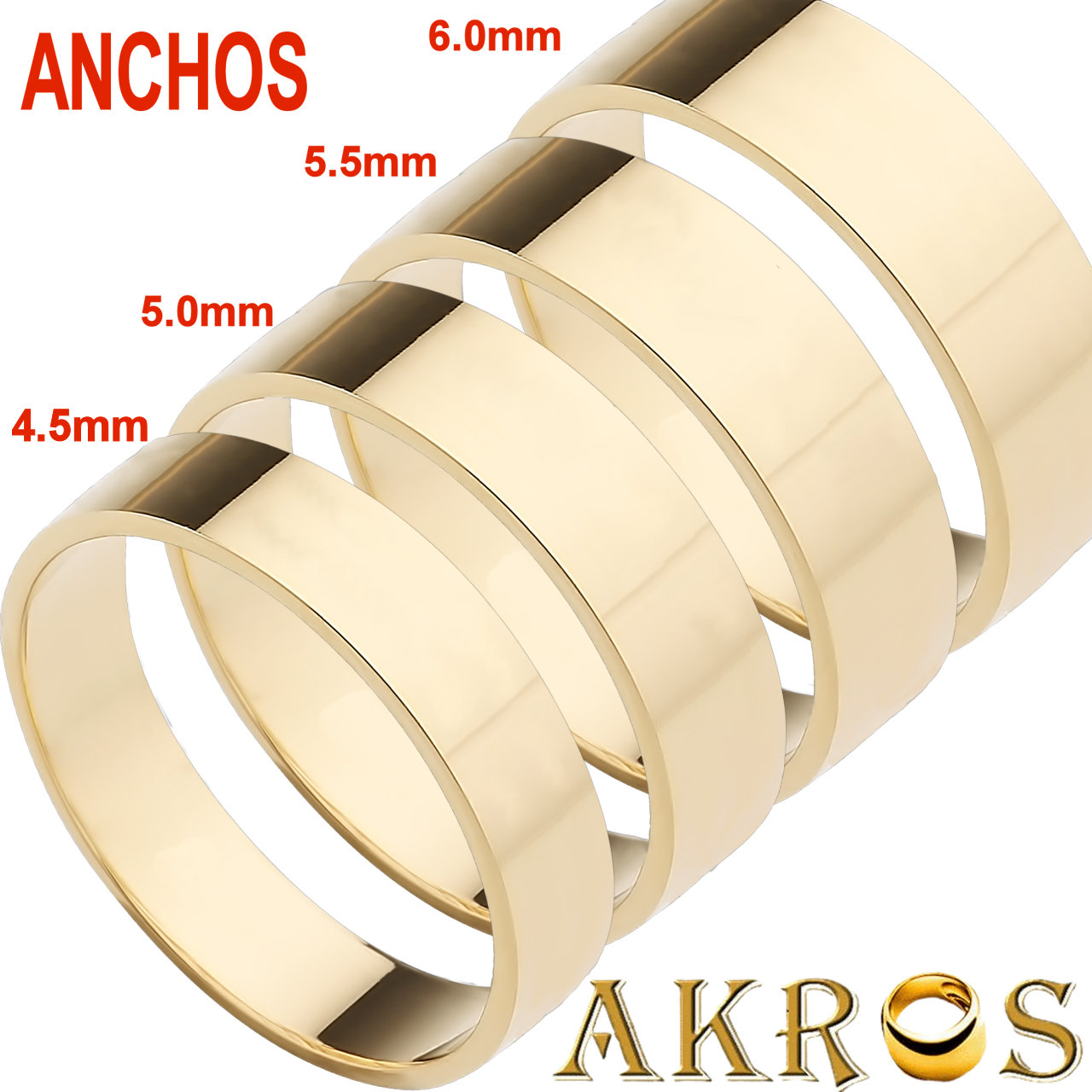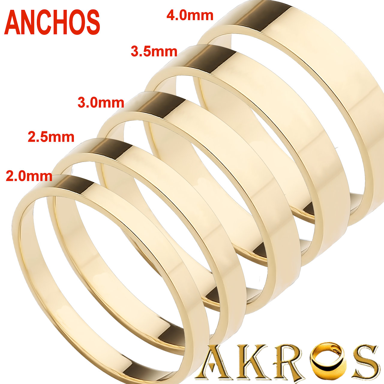 ALIANZA PLANA DESDE 2mm HASTA 6mm DE ANCHO EN ORO DE 750 MLS